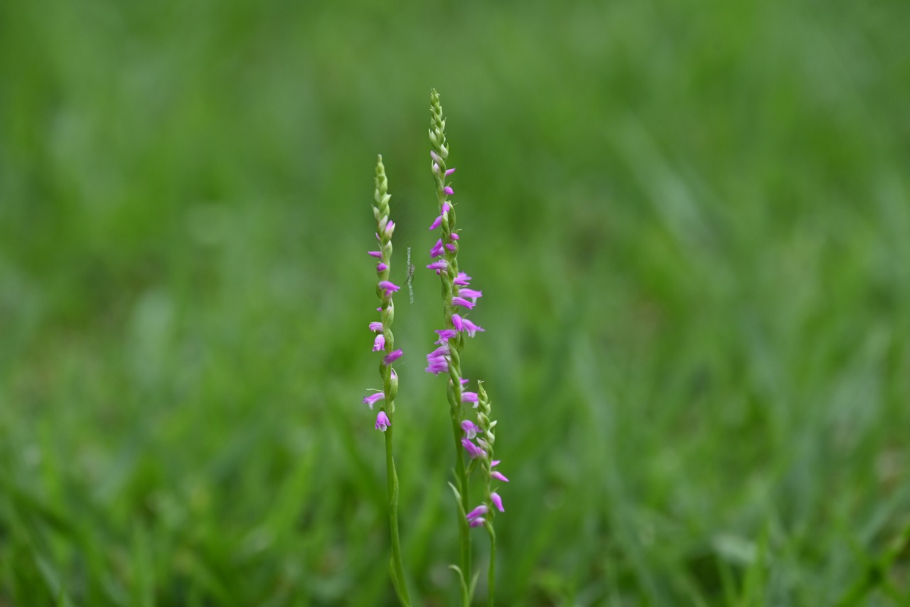 ネジバナの花が咲きました。 ラン科ネジバナ属の多年草です。 花がらせん状につき、ねじの様に見えることから、この名前が付いたようです。 高さが15cmくらいしかなく、花が小さく可憐ですね。 植物園には白花もありますので、探してみてください。 | |